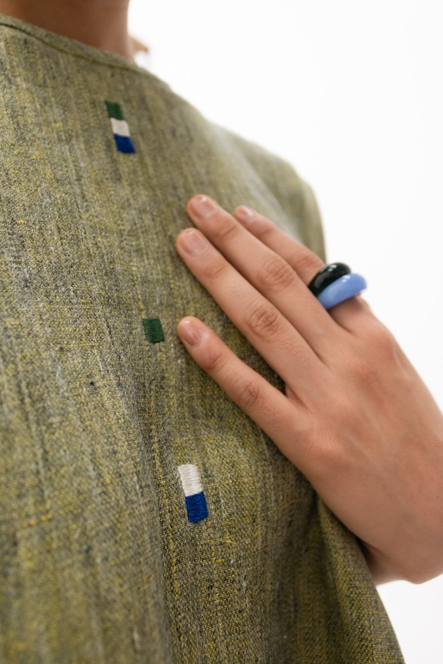 - Técnica: Grafico bordado elaborado a mano con técnica de relleno por artesanas de San Juan Chamula, Chiapas.