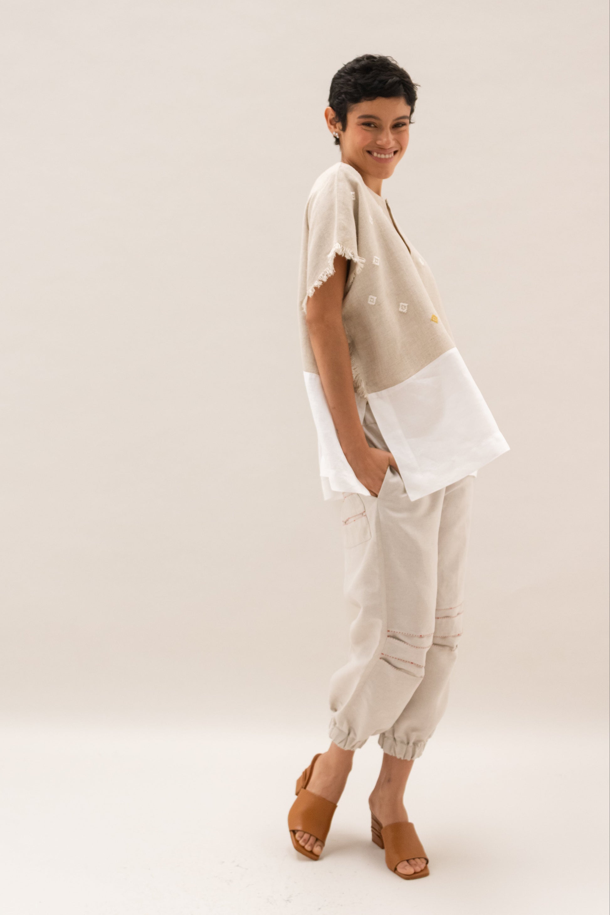 - Técnica 2: Deshilado elaborado a mano por artesanas de San Juan Chamula, Chiapas.