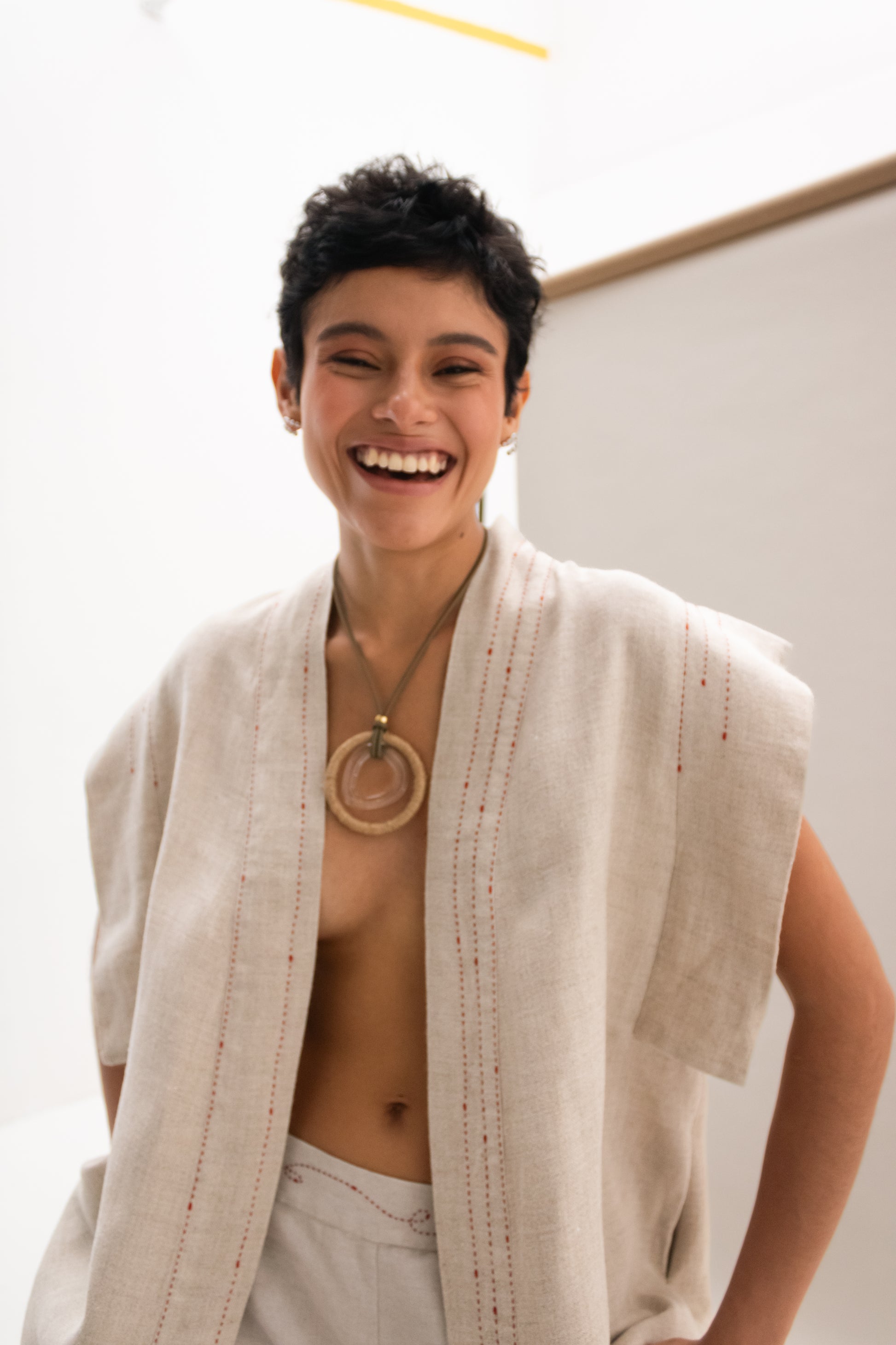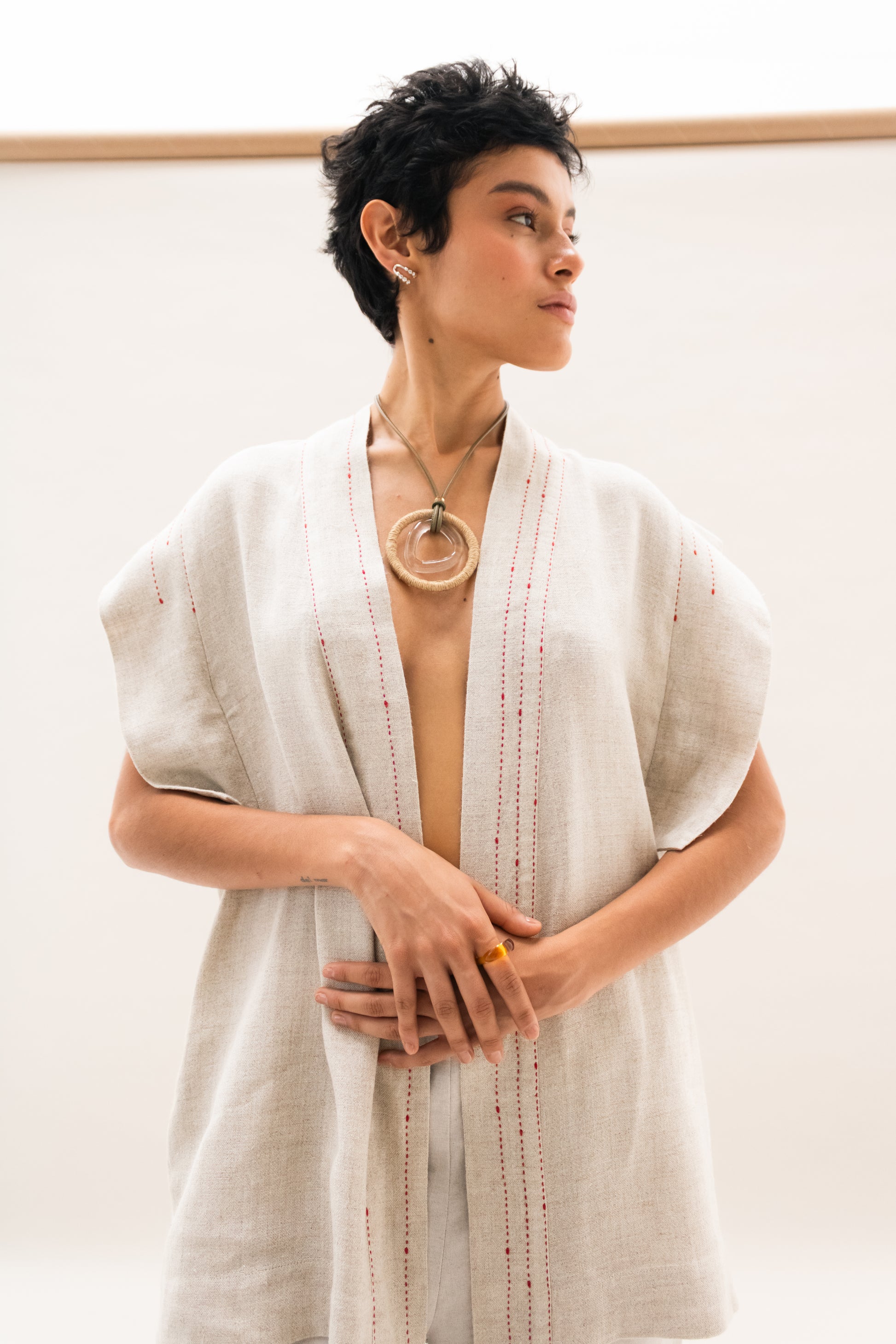 - Técnica: Grafico bordado elaborado a mano con técnica de pespunte por artesanas de San Juan Chamula, Chiapas.